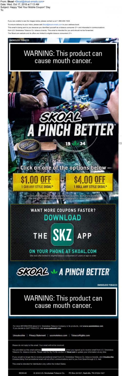 Coupon - Discount E-mail Smokeless Tobacco