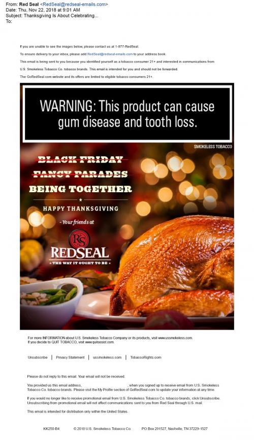 E-mail Seasonal/Holiday Smokeless Tobacco