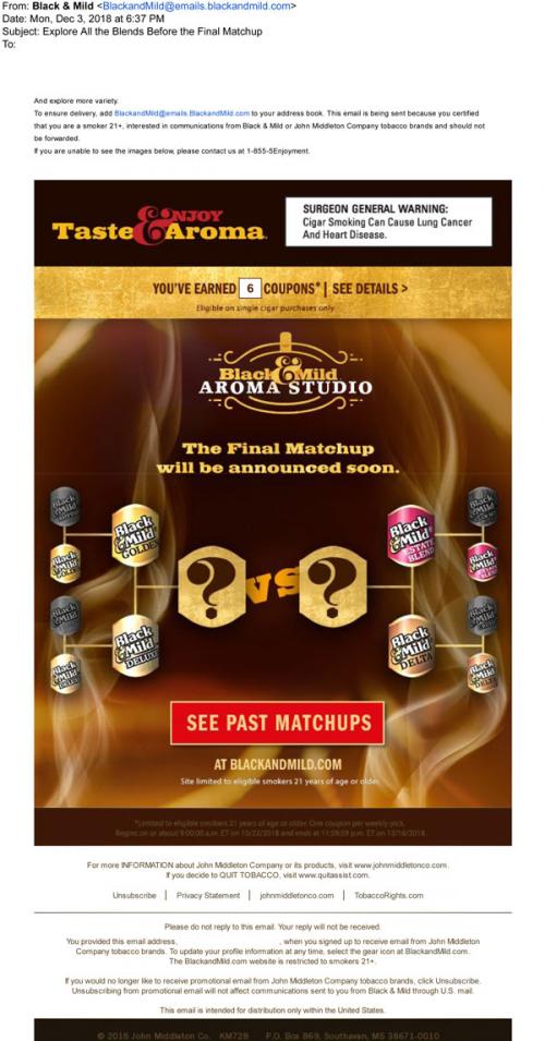 & Mild in December 2018 inviting the recipient to see past votes in the Aroma
