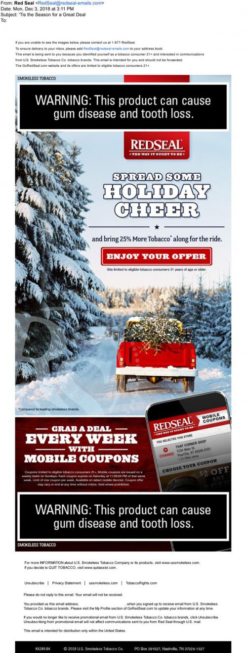 Coupon - Discount E-mail Seasonal/Holiday Smokeless Tobacco