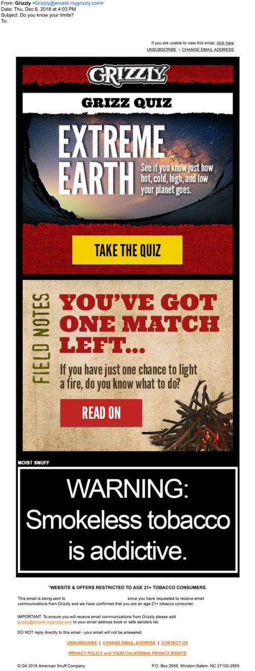 Email from Grizzly in December 2018 with a new Grizz Quiz to take and a Field Notes article to read.