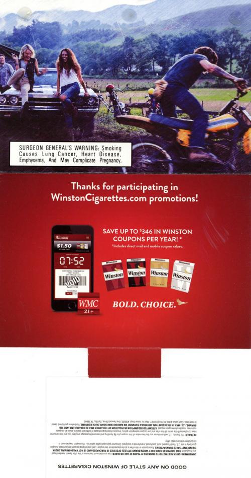 Direct mail from Winston received in February 2019 that delivers a coupon and promotes mobile coupons.