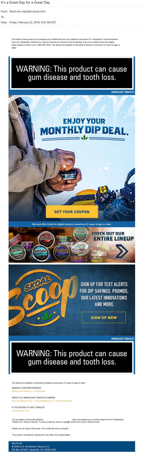 Coupon - Discount E-mail Flavored Product Smokeless Tobacco