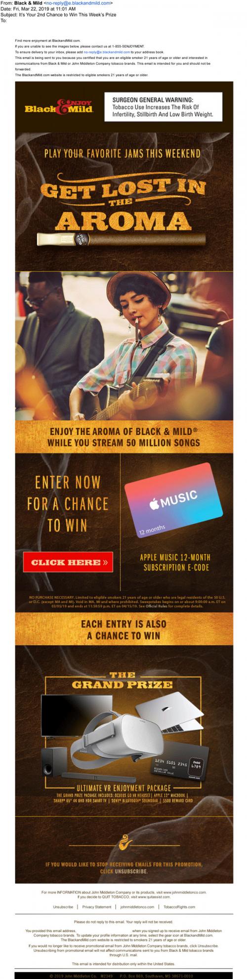 Cigars E-mail Music Sweepstakes