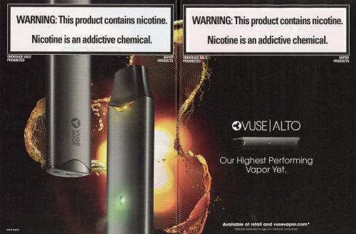 2-page Magazine ad promoting the Vuse Alto device, available at retail stores and online at the brand website.
