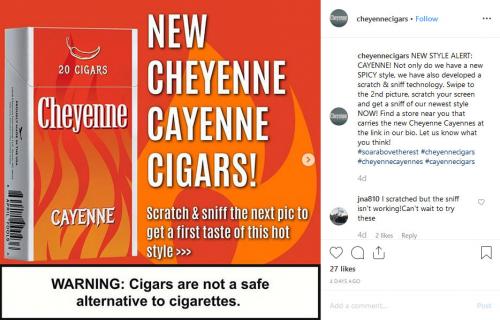 Cayenne Instagram post with a fake cayenne flavor and "scratch & sniff technology" invented for April Fool's.