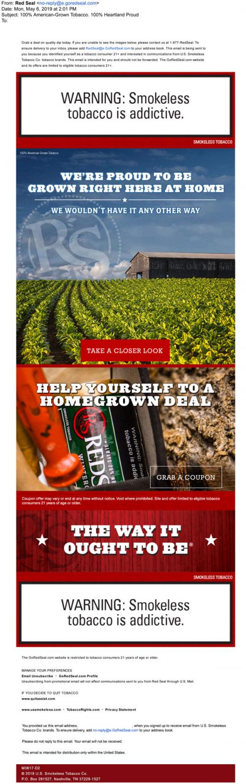 Email from Red Seal in May 2019 with links to learn more about the brand's heritage and to claim a coupon.