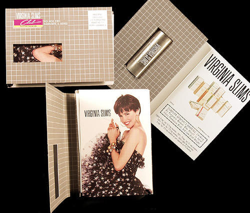 Gray Virginia Slim Club - You've come a long way Baby mailing. Coupon along with silver Virginia Slims Club case (for lighter, perhaps) enclosed.