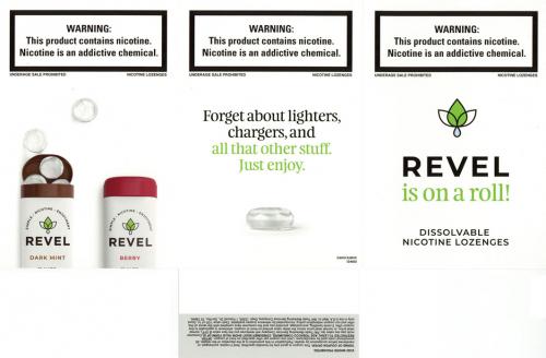 Direct mail from Revel in July 2019, a nicotine lozenge product. Includes a coupon and directs the recipient to find a store at the brand website.