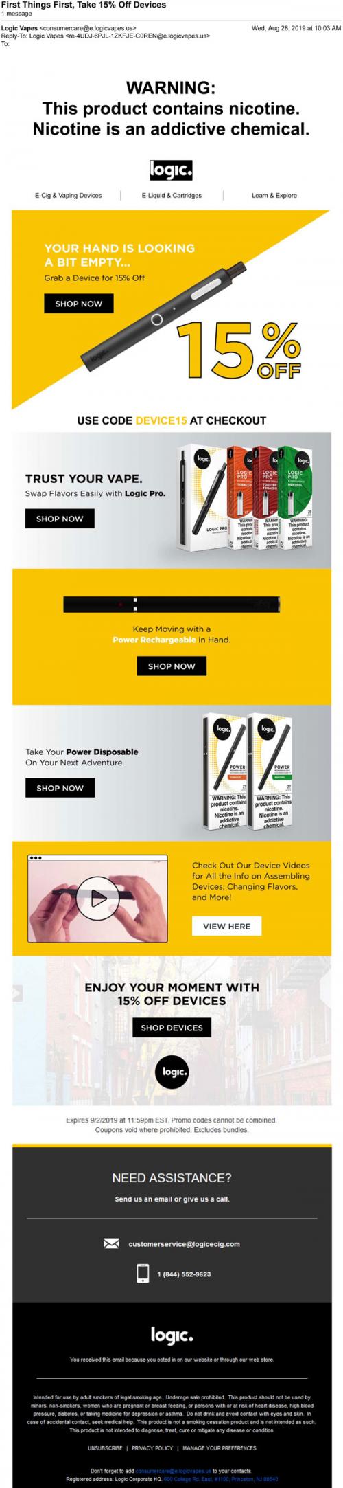 Email in August 2019 from Logic with a discount offer on purchases made through their online store, as well as a link to check out how-to videos.