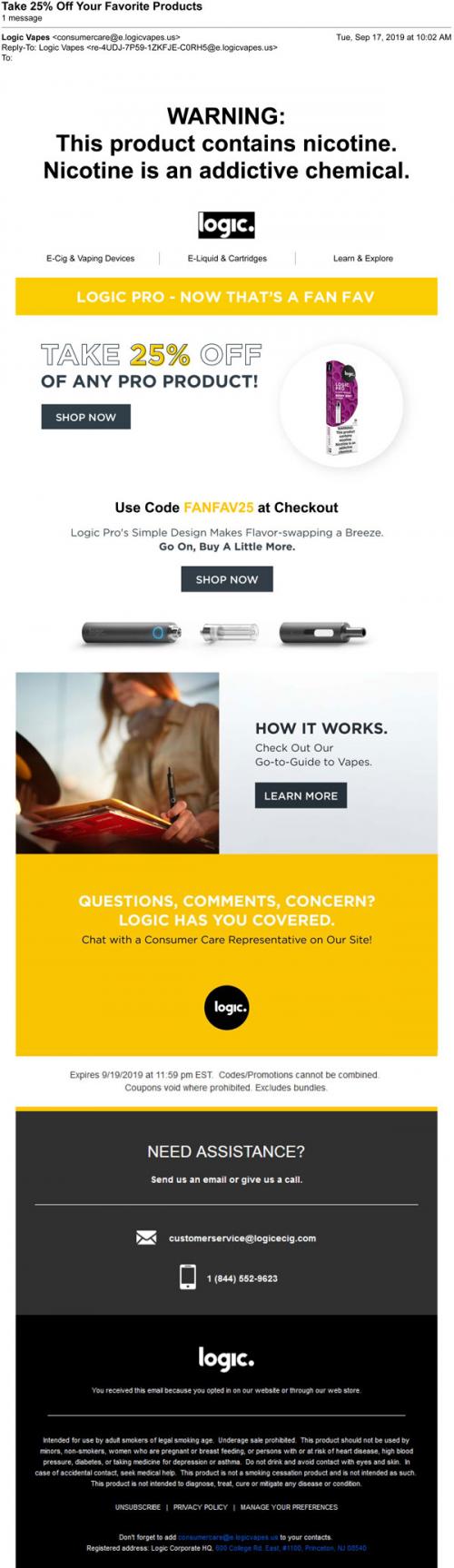 Email from Logic in September 2019 promoting a sale on the brand website.