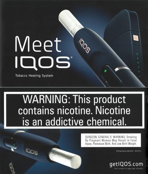 Direct mail received in November 2019 promoting the IQOS device and Marlboro HeatSticks, especially the fresh menthol style. The mailing contains a booklet of several pages that describes the device technology, stresses the no ash or odor claim, expounds on the product's difference from cigarettes and e-cigarettes, and announces the product launch in Atlanta, GA. Includes models of various ethnicities and several women.