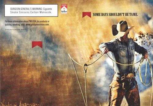 Direct mail received from Marlboro in December 2019 that celebrates the recipient's birthday. Includes a reminder to claim "birthday bonus" points on the brand website as part of their Rewards program. Has images of cowboys wrangling horses. Text: "Some days shouldn't be tame."