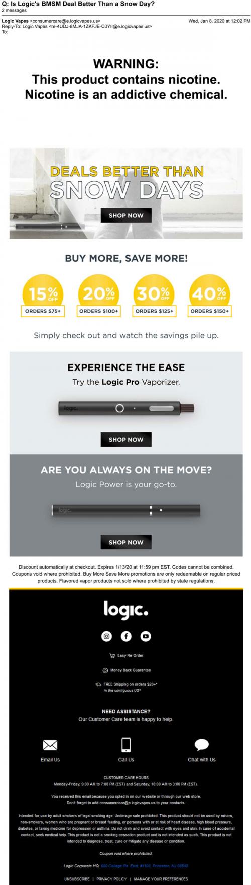 Email from Logic in January 2020 promoting a winter sale through the brand website.
