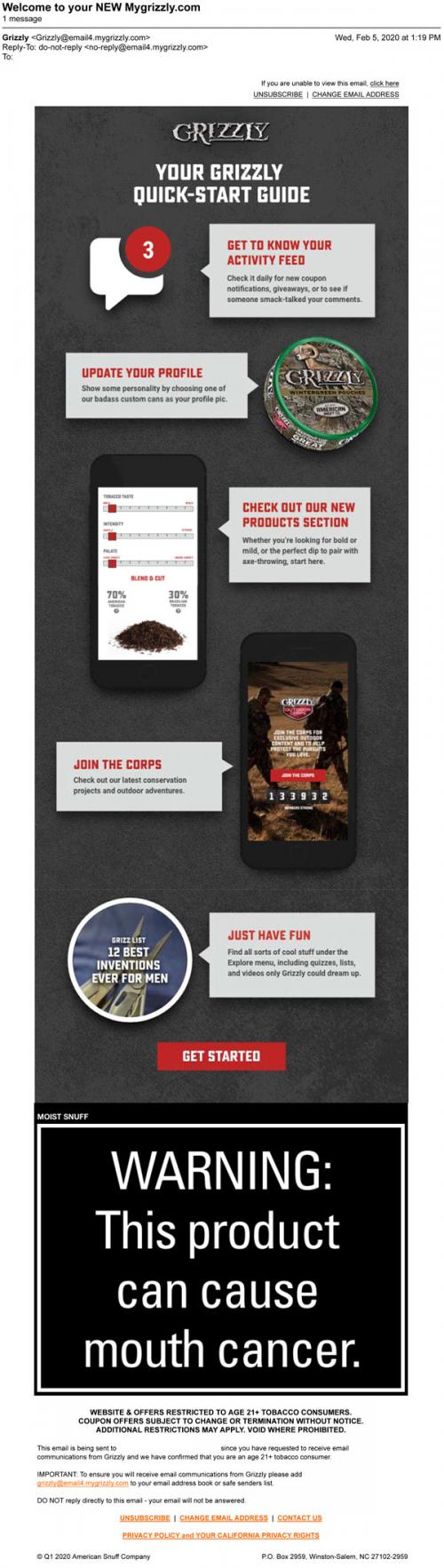 Email from Grizzly in February 2020 introducing the recipient to the newly designed brand website with a link to check out the new features.