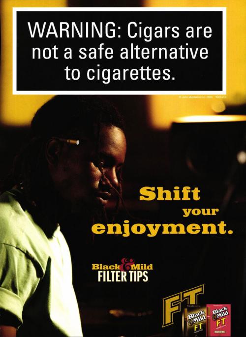 Black & Mild magazine ad for their filter tip styles in original and sweets. Text: "Shift your enjoyment."