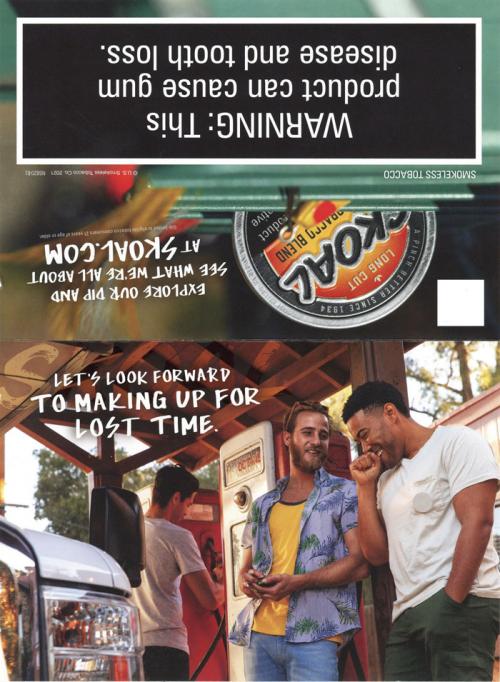 Direct mail received from Skoal in May 2021 promoting their flavored smokeless tobacco. Includes a QR code to scan with a mobile phone and visit a store locator online. Text: "Let's look forward to making up for lost time."