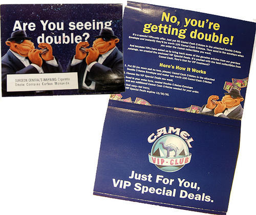 "Camel VIPs Only..." Camel VIP Club mailing with offers to get stuff for "C-Notes." features Joe Camel.