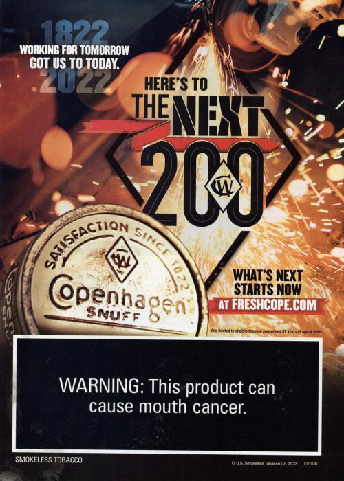 Magazine ad celebrating Copenhagen's 200th anniversary. Directs the viewer to the brand website. Text: "Working for tomorrow got us to today. Here's to the next 200"