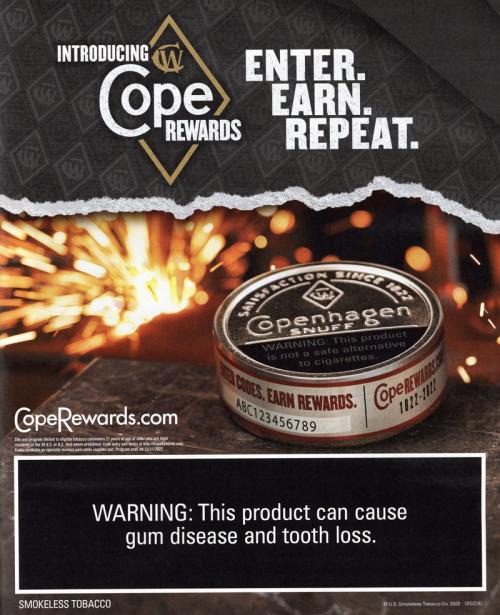 Magazine ad for Copenhagen, introducing Cope Rewards. Cans will