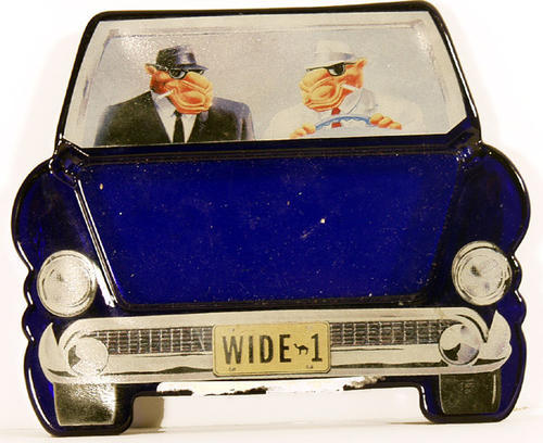 Blue ashtray shaped like a car with 2 camels smoking inside.