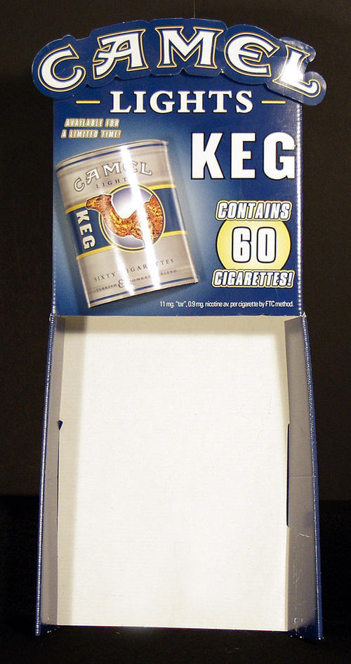 Camel Lihts key display. contains 60 cigarettes. Grey keg shown with camel pictured on front.