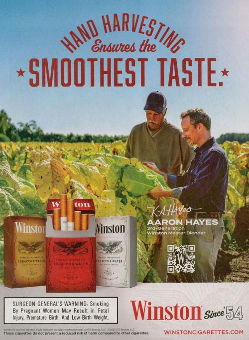 Winston magazine ad promoting their tobacco as "hand harvested."