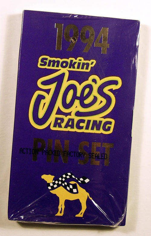 1994 "Smokin' Joe's Racing" pinset. Features pins of famous racers. Purple and yellow box.