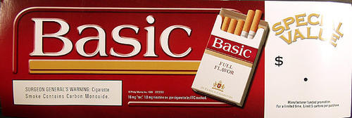 Cardboard Basic special value sign; half red, half white backgrounds.