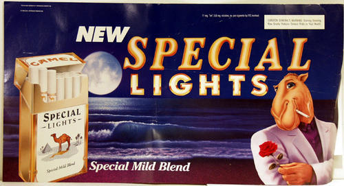 Cardboard "New Special Lights" with Joe Came on beach at night. Pack of special lights pictures "Special mild blend"