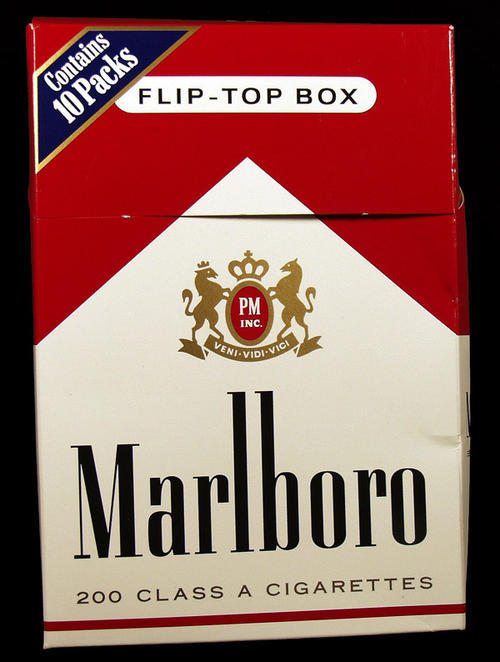 Carton Box shaped as enlarged Pack. "Contains 10 packs". "Merry Christmas from Marlboro Country".