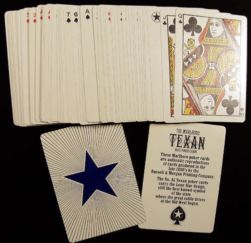 The Marlboro Team N-45 poker cards. Texas star illustrated on back of each card.