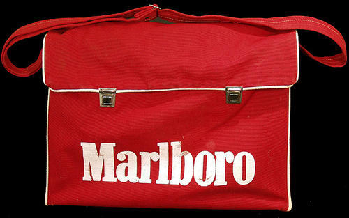 Red Marlboro canvas bag with white piping.