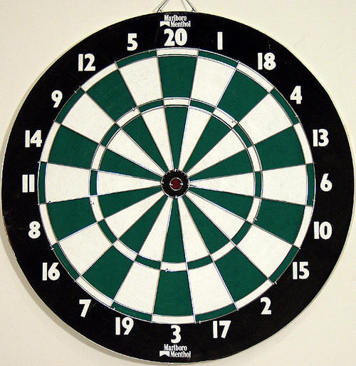 Black green and whit dart board on one side and Baseball on the other, Marlboro Menthol.