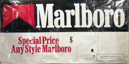 Marlboro special price any style Marlboro banner. Black and white background with top half of banner black with Marlboro text in white, and bottom half white with red text.