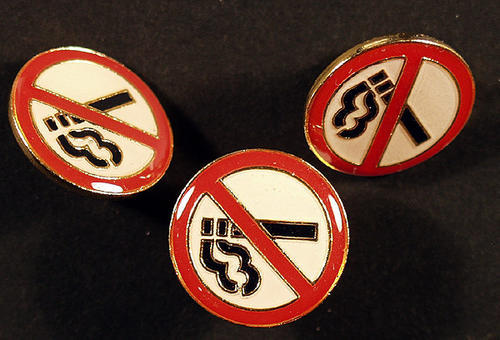 No smoking logo pin: Cigarette with the line through it.
