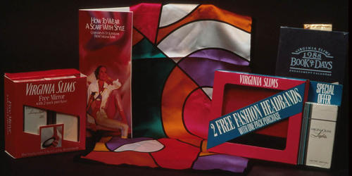 Virginia Slims skarf, headbands, mirror and "Book of Days"