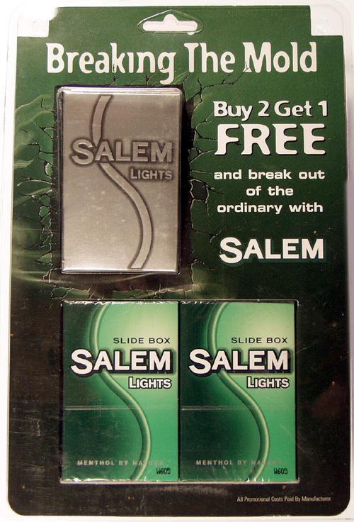 "Breaking the Mold - Buy 2 get 1 free and break out of the ordinary with Salem". Slide Box. Green Black and white.