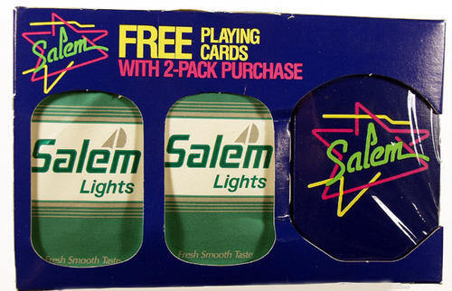 Blue Box - Free playing cards with 2 pack purchase. Salem Logo in Neon Lights.