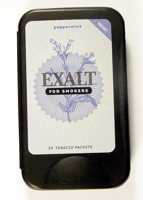 Box of Exalt tobacco packets, peppermint, for smokers.