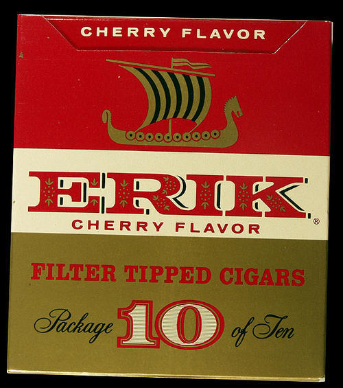 Cherry flavor- 10 filter tipped cigars in original plastic. ERIK Natural, image of viking ship.