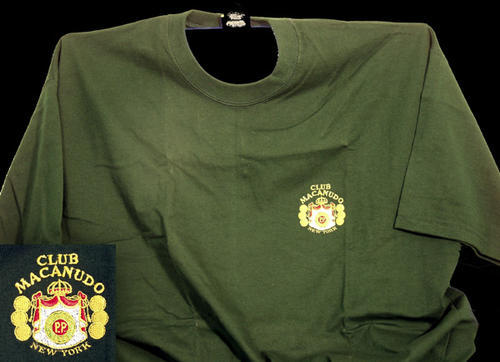 Green t-shirt w/ embroidered "Club Macanudo New York" logo.