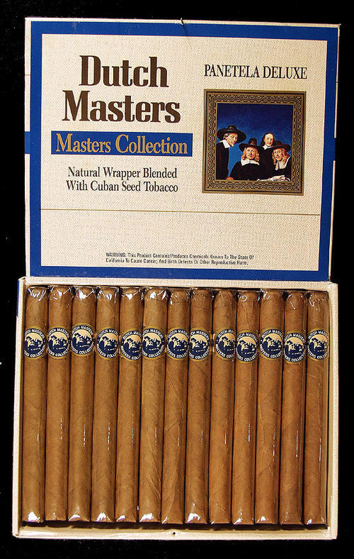 New Dutch Master: Masters collection natural wrapper blended with Cuban seed tobacco; 25 cigars, Patella Delux.