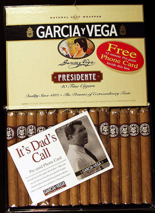 Garcia Y Vega Presidente: 40 fine cigars. Free 15 minute prepaid phone card inside this box.
