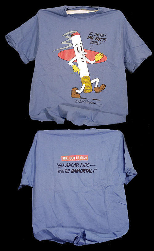 Mr. Butts t-shirt, blue "Mr. Butts sex: Go Ahead Kids- You're Immirtal." From the maker of Doonesburg.