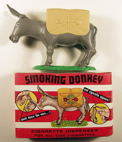 Smoking Donkey. Cigarette Dispenser, for all 20 cigarettes. Push down ears and cigarette appears.