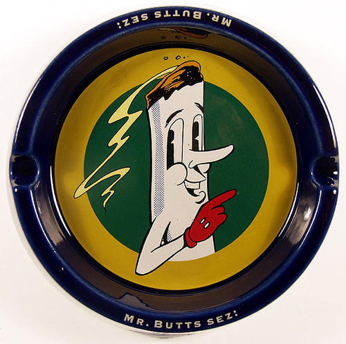 Large ceramic ash dish. Mr. Butts "Thanks for Smoking."