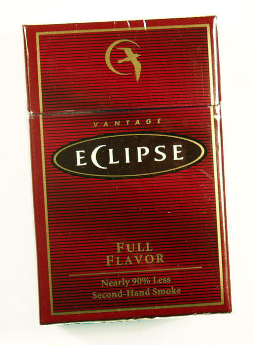 Eclipse full flavor. Dark red packs with "The Inside Story" brochures glued to outside of pack. White and gold lettering.