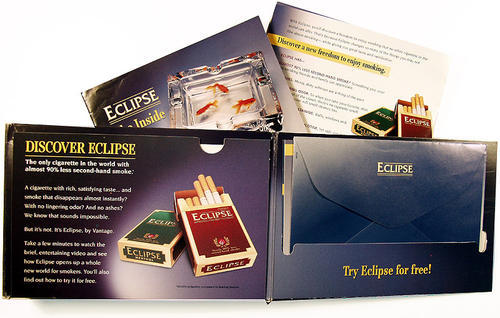 Introduction of Eclipse cigarette with video and pamphlet. Meant to be mailed. Invitation from RJR to meet other smokers and take home a free carton. Meetings are held in Cleveland and Tennessee.