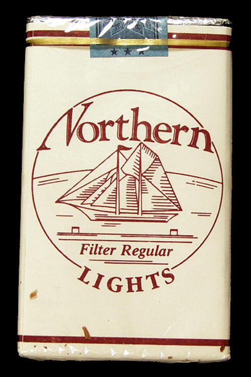 Northern Lights- manufactured from US prison factory- white package w/ red lettering and design